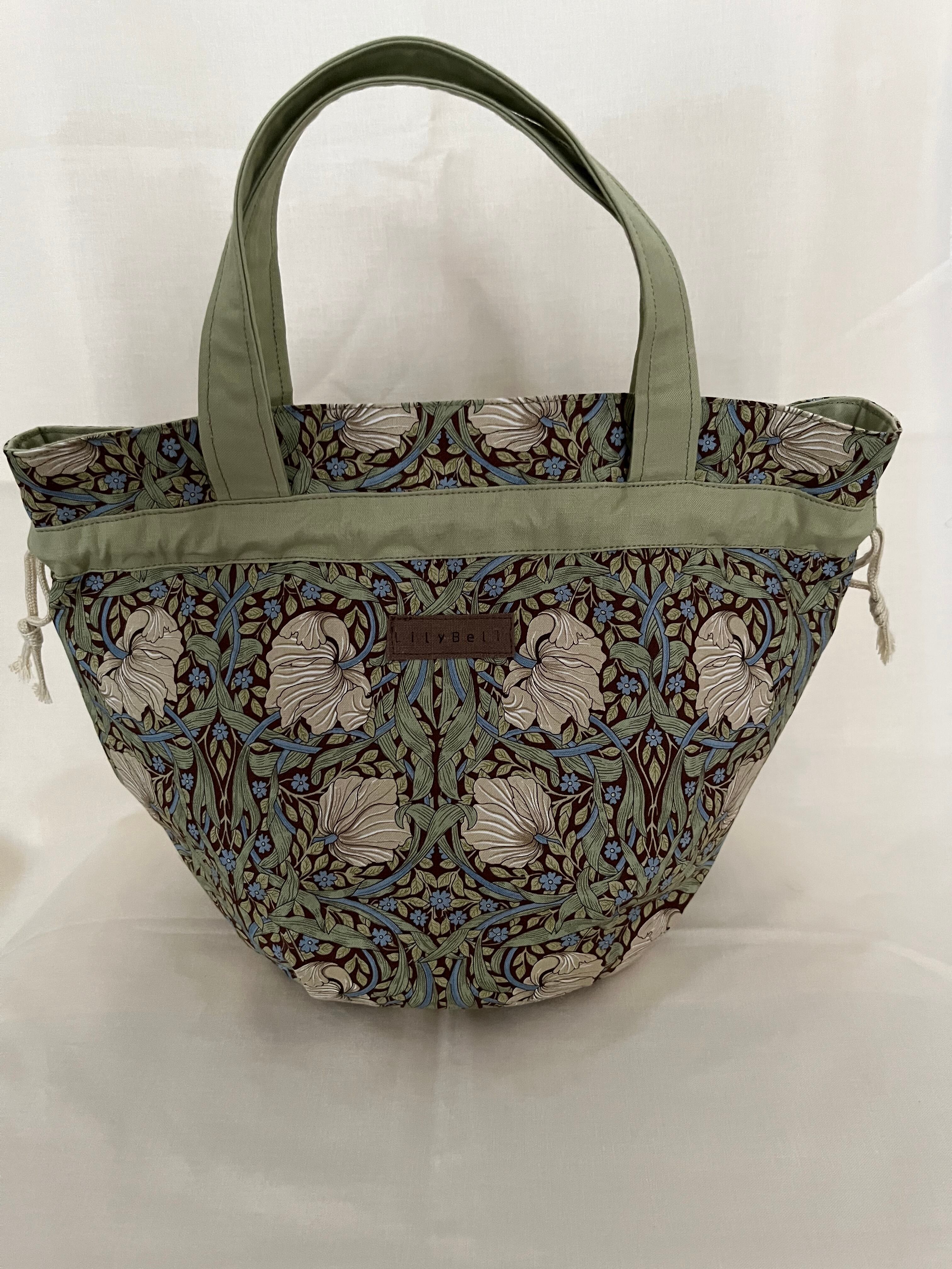 巾着バッグ 巾着手提げバッグ ウィリアムモリス生地使用 大人可愛い ハンドバッグ丸底のコロンとした巾着手提げバッグ